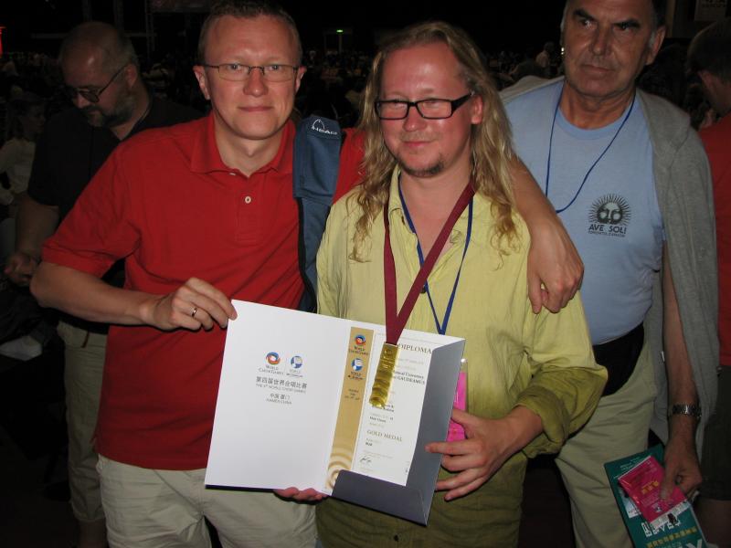 Pirms tam “Gaudeamus” vīri piedalījās IV Pasaules koru olimpiādē Ķīnas pilsētā Sjameņā, kur ieguva zelta medaļu vīru koru grupā.